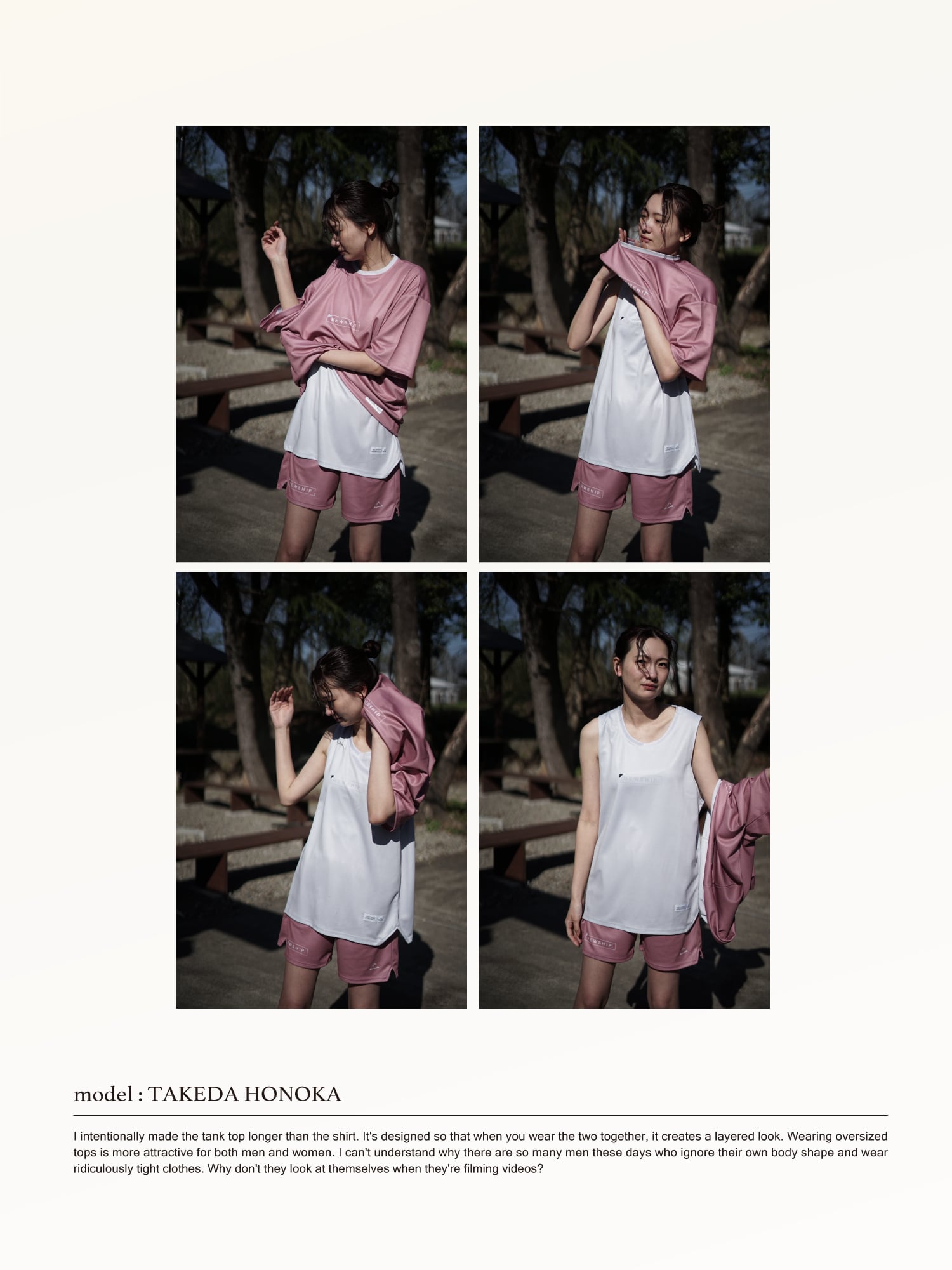90年代後半から2000年初頭のNBAウォームアップウェアのサイズ感をイメージしたアイテム。肩口の位置を大きく外に広げオーバーサイズのビジュアルを再現すると同時に腕を上げた際の肩周りのストレスを取り除いた。