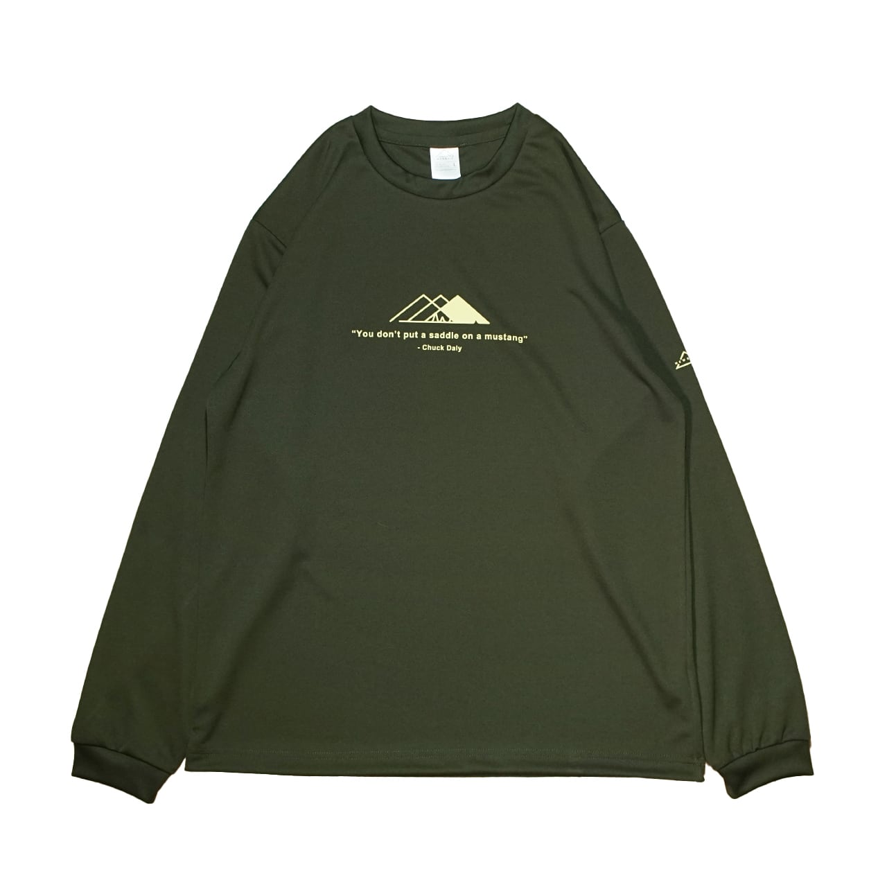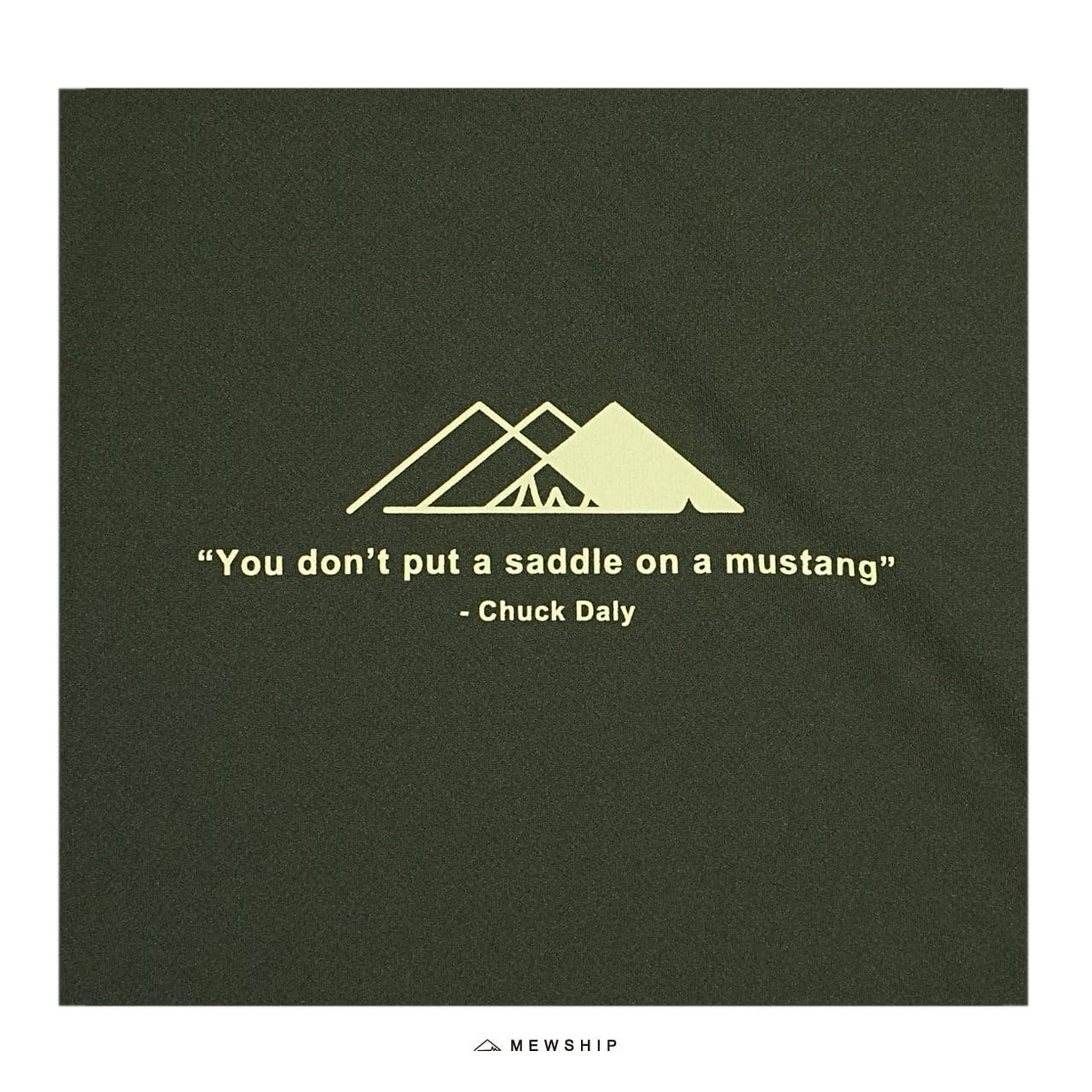 重ね合わせ山稜をイメージしたMEWSHIPのロゴと、デニス・ロッドマンの数少ない理解者であった名将チャック・デイリーの言葉を綴ったアイテム。